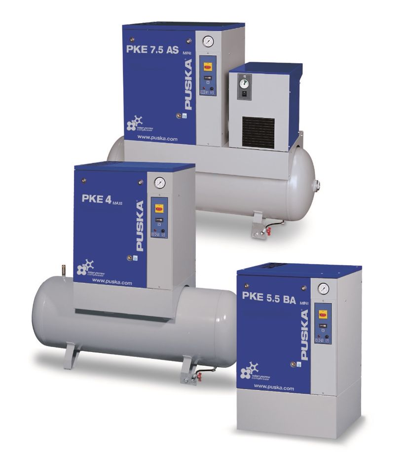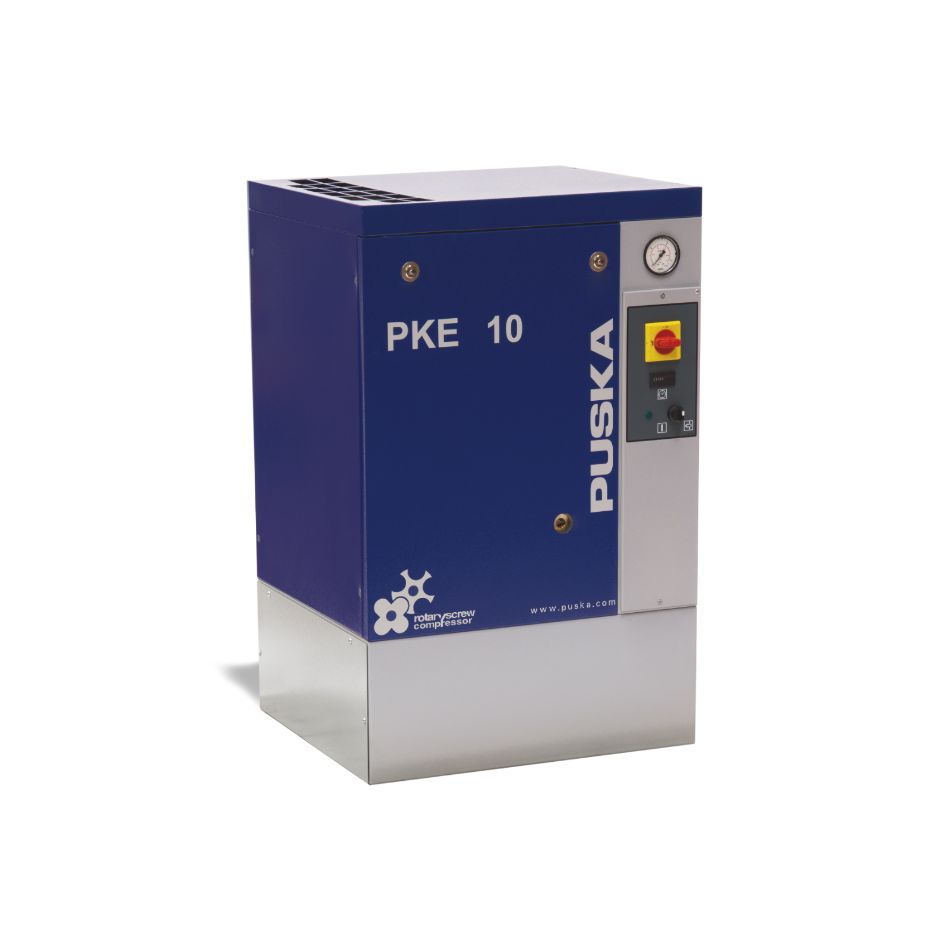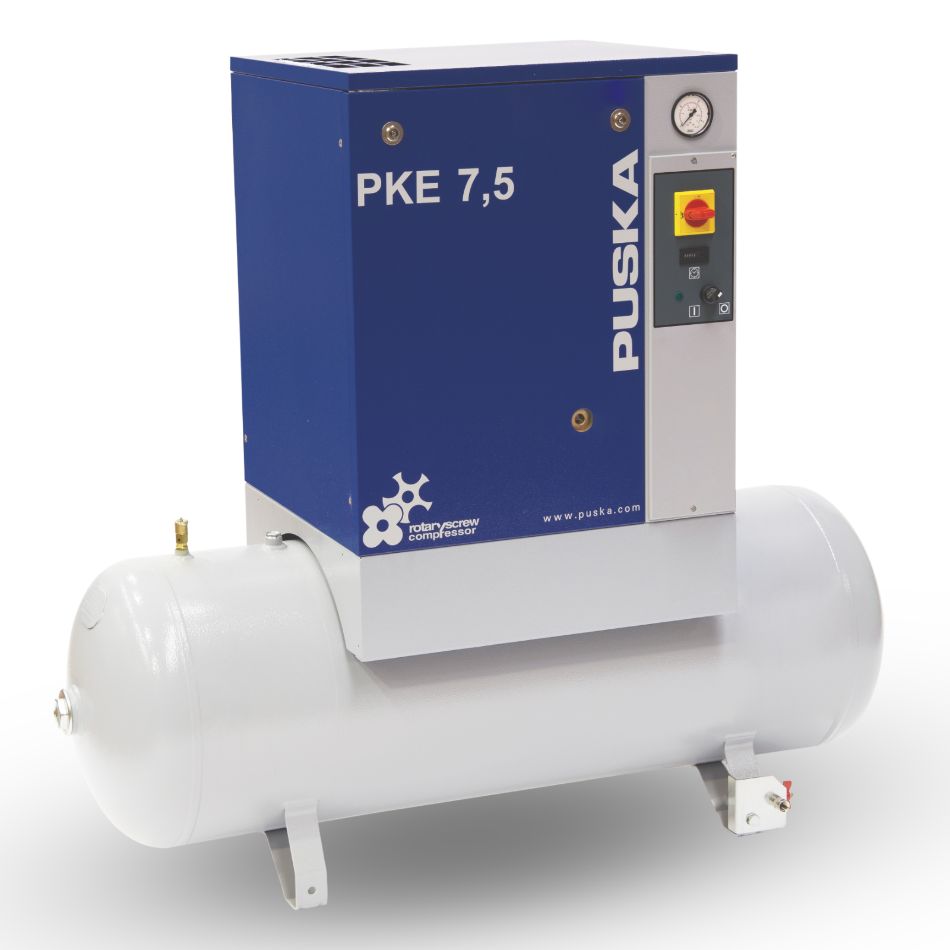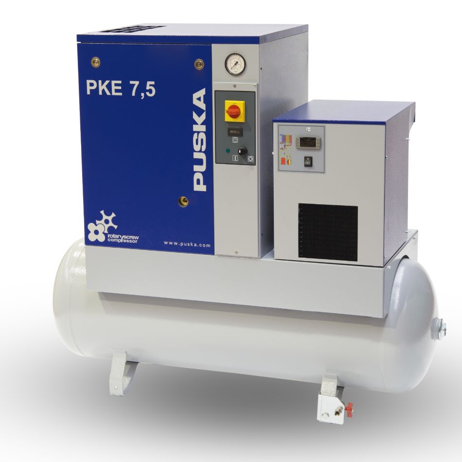 Os compressores PKE têm opções de potência de 3 a 7,5 HP com secador ou sem secador incluído, com starter nas versões 5,5 e 7,5 HP ou sem starter nas versões 3 e 5 HP. Personalização completa para se adaptar às suas necessidades.