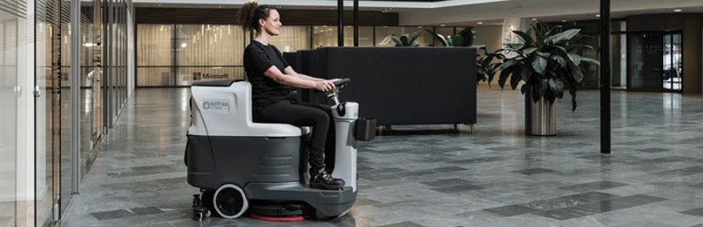 Lavadora compacta de condutor sentado para limpar até 6.500 m²